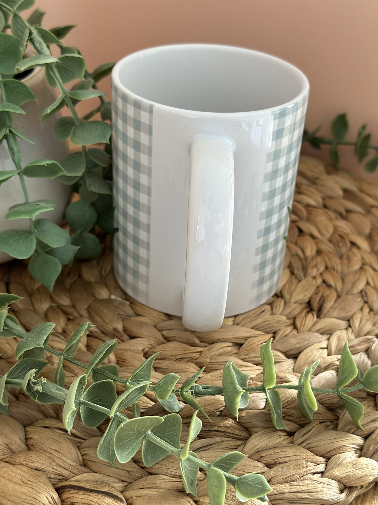Hyacinth Ceramic Mug with Light Blue Buffalo Check Pattern